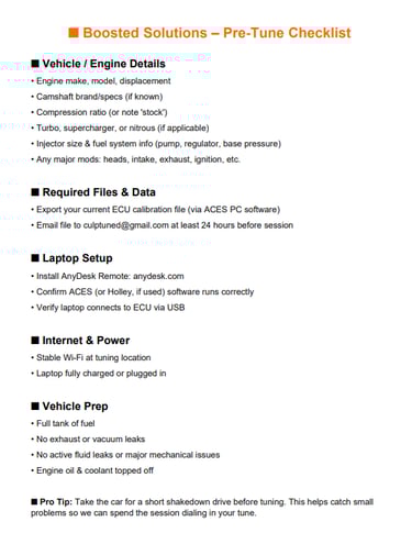 pre tune checklist PDF
